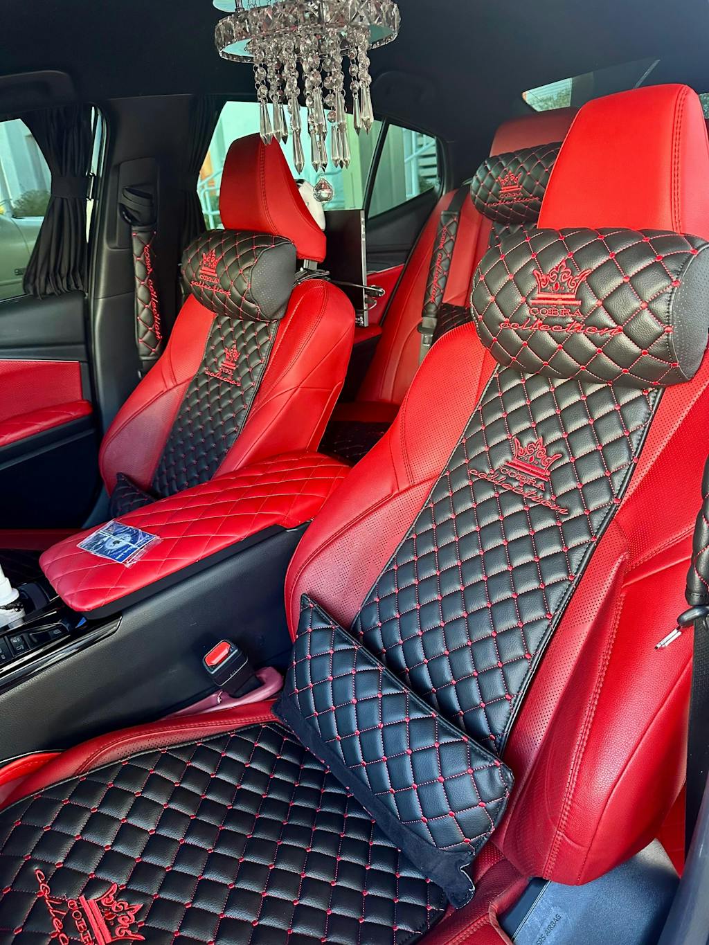 VIP Car Interior Set Black With Red Diamond Stitch Pillows