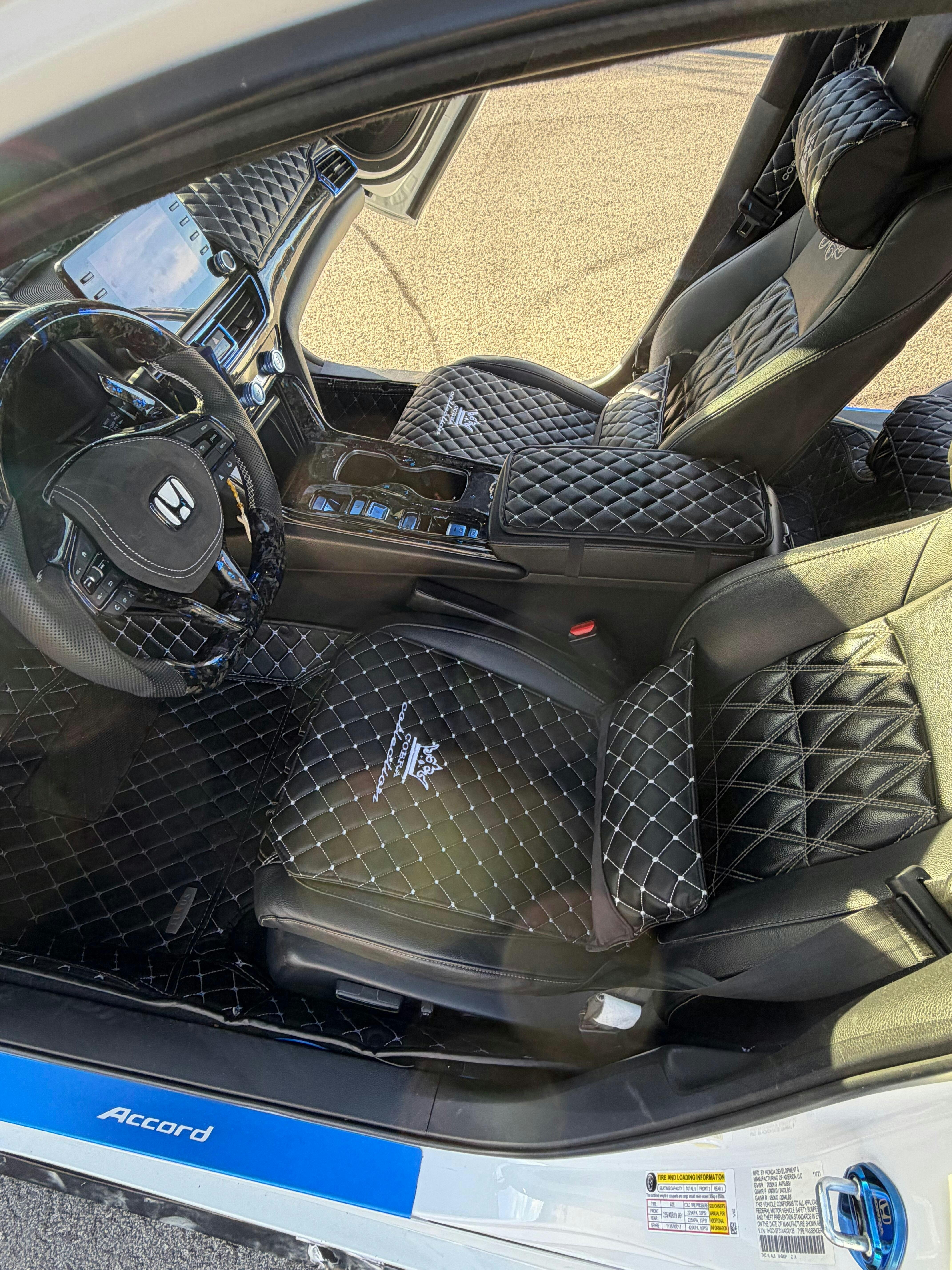 VIP Car Interior Set Black With White Diamond Stitch Pillows