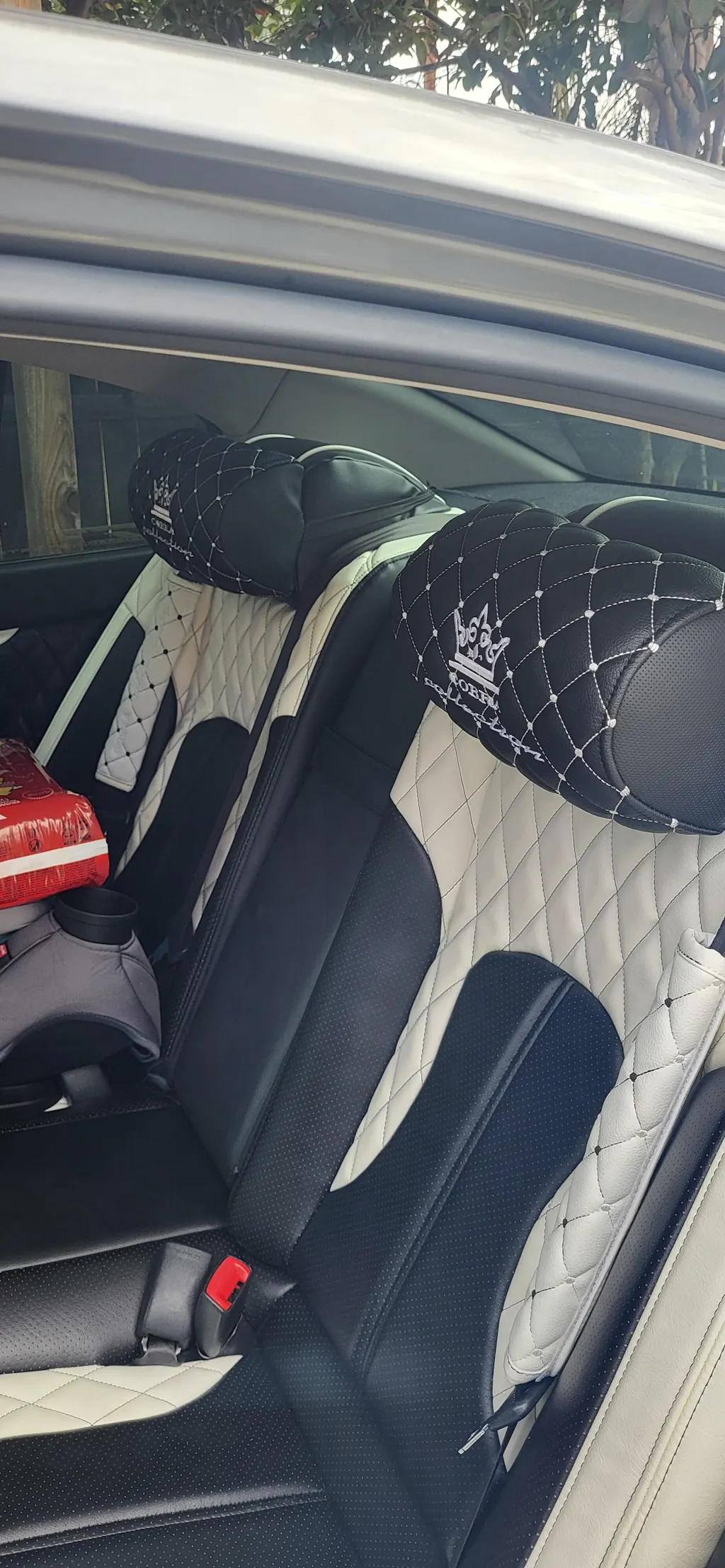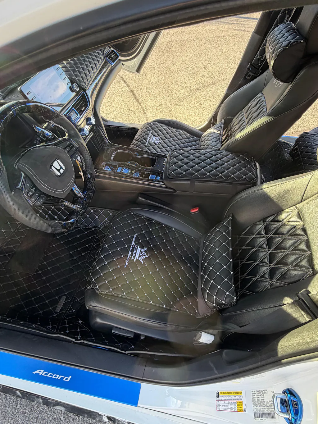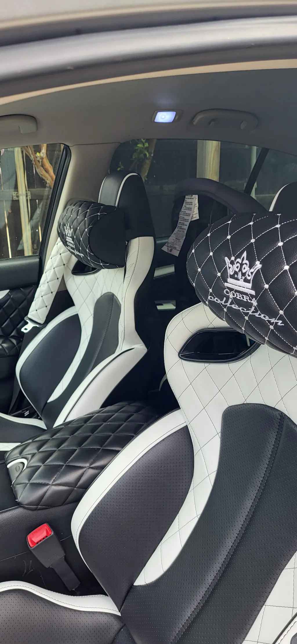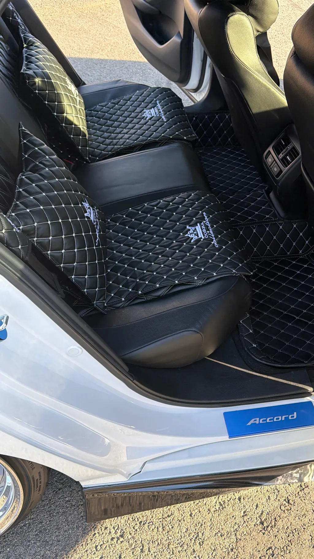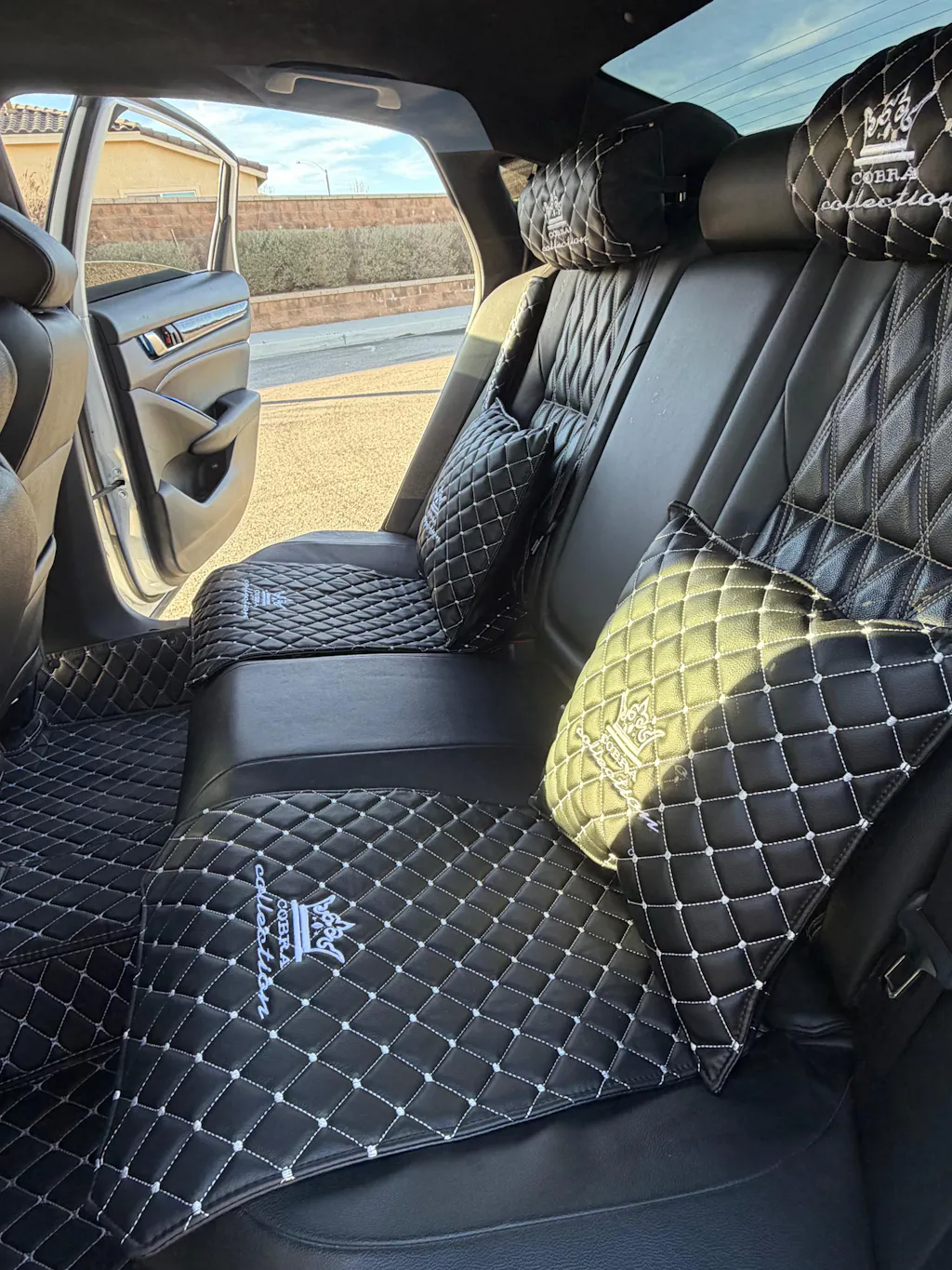 VIP Car Interior Set Black With White Diamond Stitch Pillows